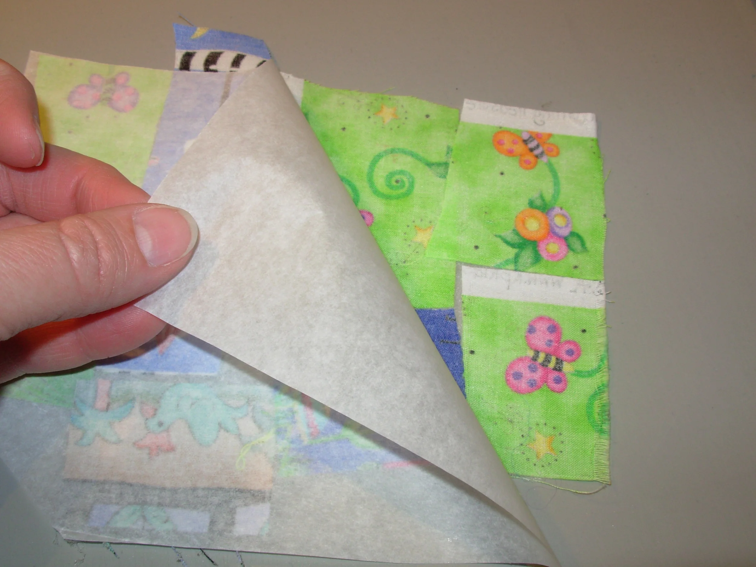I cut the section off with my "paper" scissors. You have the paper backing on there so don't use your good fabric scissors. Flip the whole thing over and give it another press with your iron on the paper side of the fusible web to make sure it's well fused.