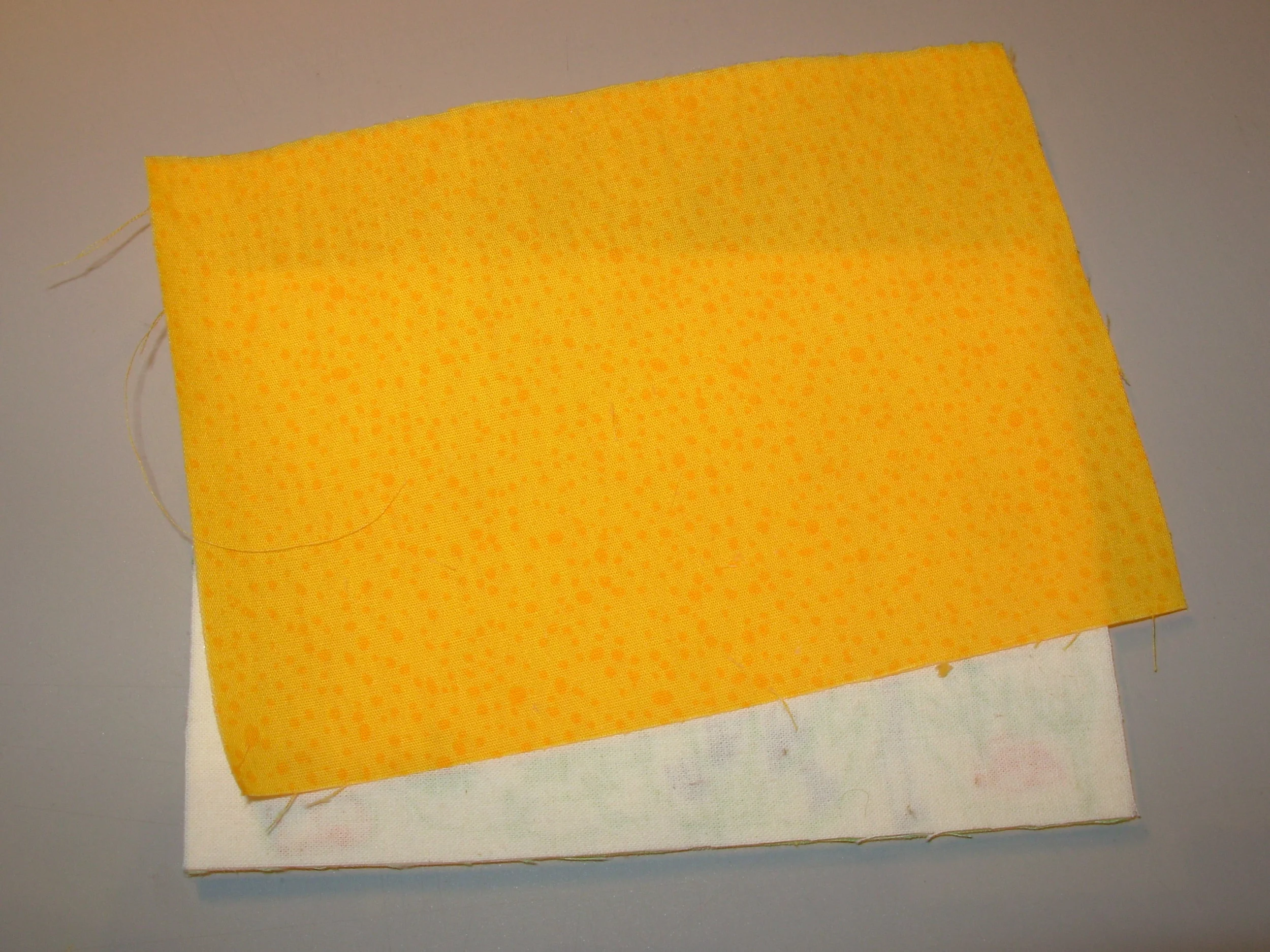 Then I picked out this pretty yellow to go over the muslin. I had to use more Wonder Under to fuse this in place. Again, cut it a bit larger at first and then trim to size after fusing.