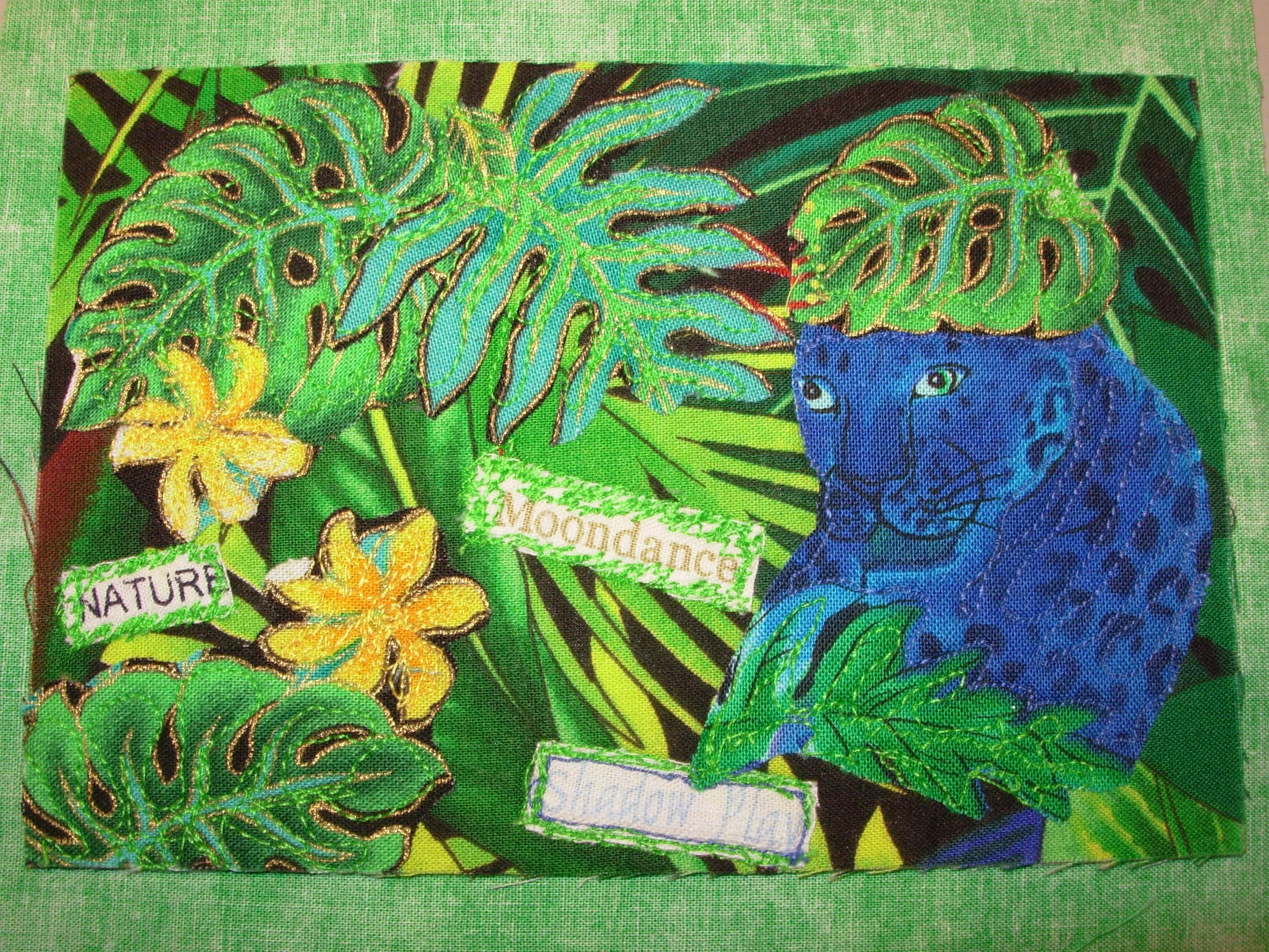 These two cards will be sent to the Sisters Outdoor Quilt Show for a postcard exhibition called Wish Upon A Card. They are collecting fabric postcards to be sold at the quilt show. One hundred percent of the proceeds will go to breast cancer support groups around Central Oregon. This is a very worthy cause so if you are so inclined to create a postcard or two think about sending one of yours in! The cards will be on display the week before the quilt show and they are having a Viewer's Choice contest. Click the Wish Upon A Card link to get the mailing information.