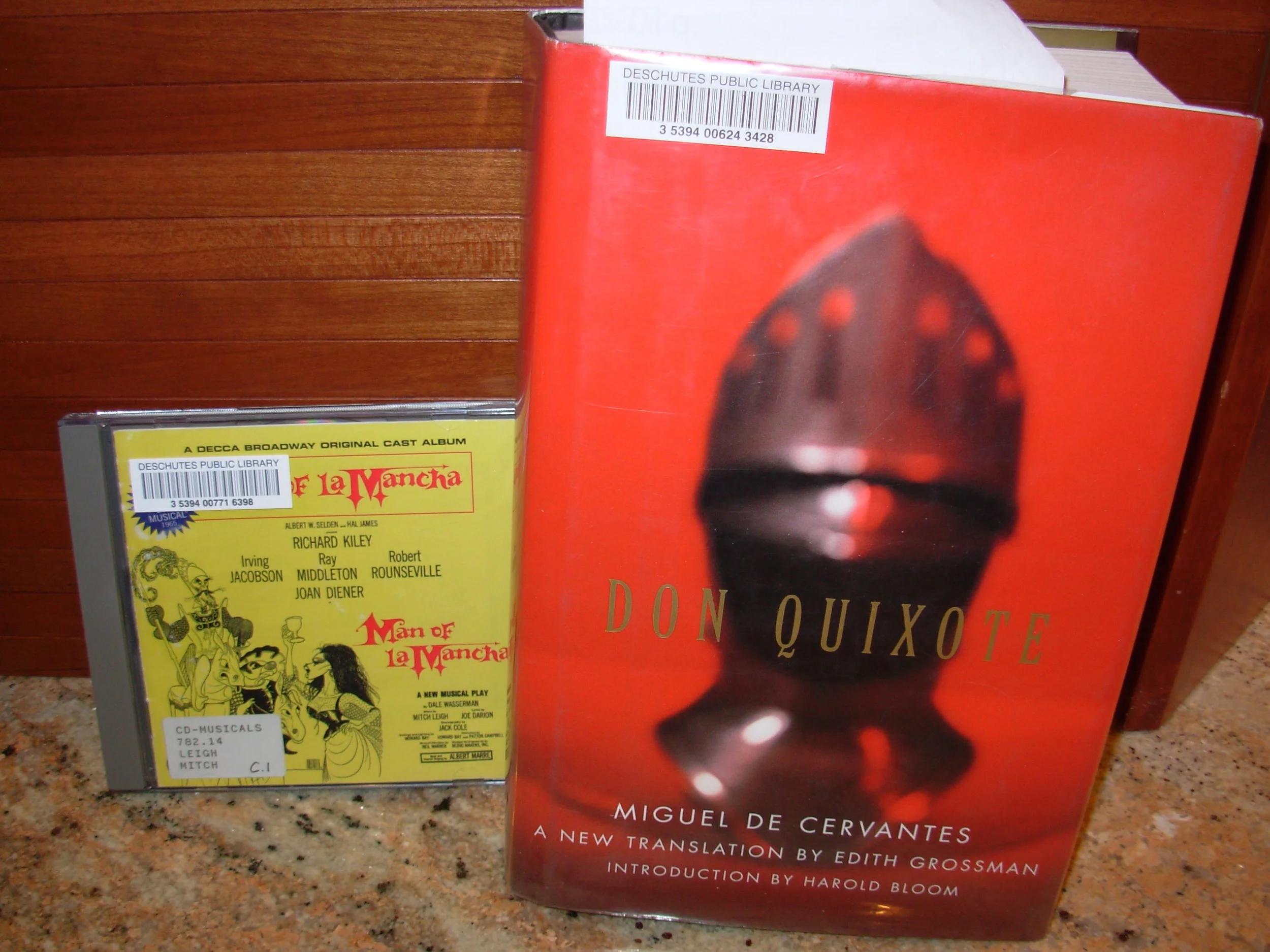 Well, by this time I was sure that we were meant to immerse ourselves in Don Quixote at this time. Meanwhile, Chloe became more enamored of the play. Her director brought the movie soundtrack to rehearsals for the kids to listen to. Then we ordered the Peter O'Toole version from Netflix and watched that. Chloe's director also had the whole cast over to her house to watch the movie. Chloe started singing the songs at home. She got the Broadway musical soundtrack from the library, transferred it to her iPod and was singing the songs all the time. Then she got Ryan interested so he's been singing the songs as well. The coup de grace is Chloe getting the unabridged Don Quixote from the library and reading it. She's not done yet, but we have a renewal on the library loan and she's still reading. I myself have never read the whole thing, though I remember reading some of it in the original Spanish for my high school Spanish class.