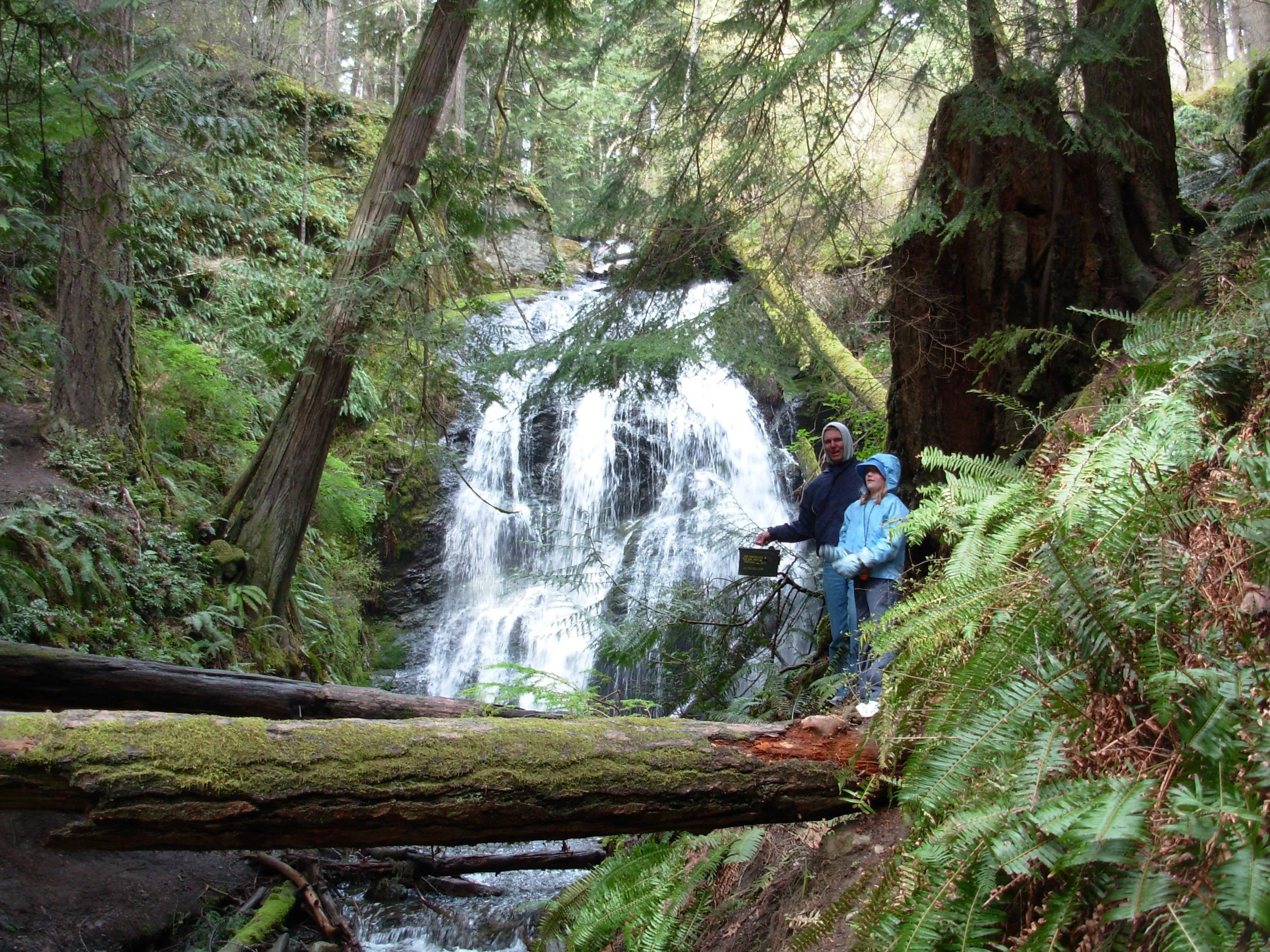 We spent many happy hours geocaching over the next few days. The first was at this waterfall in Moran State Park (same family who built the mansion).