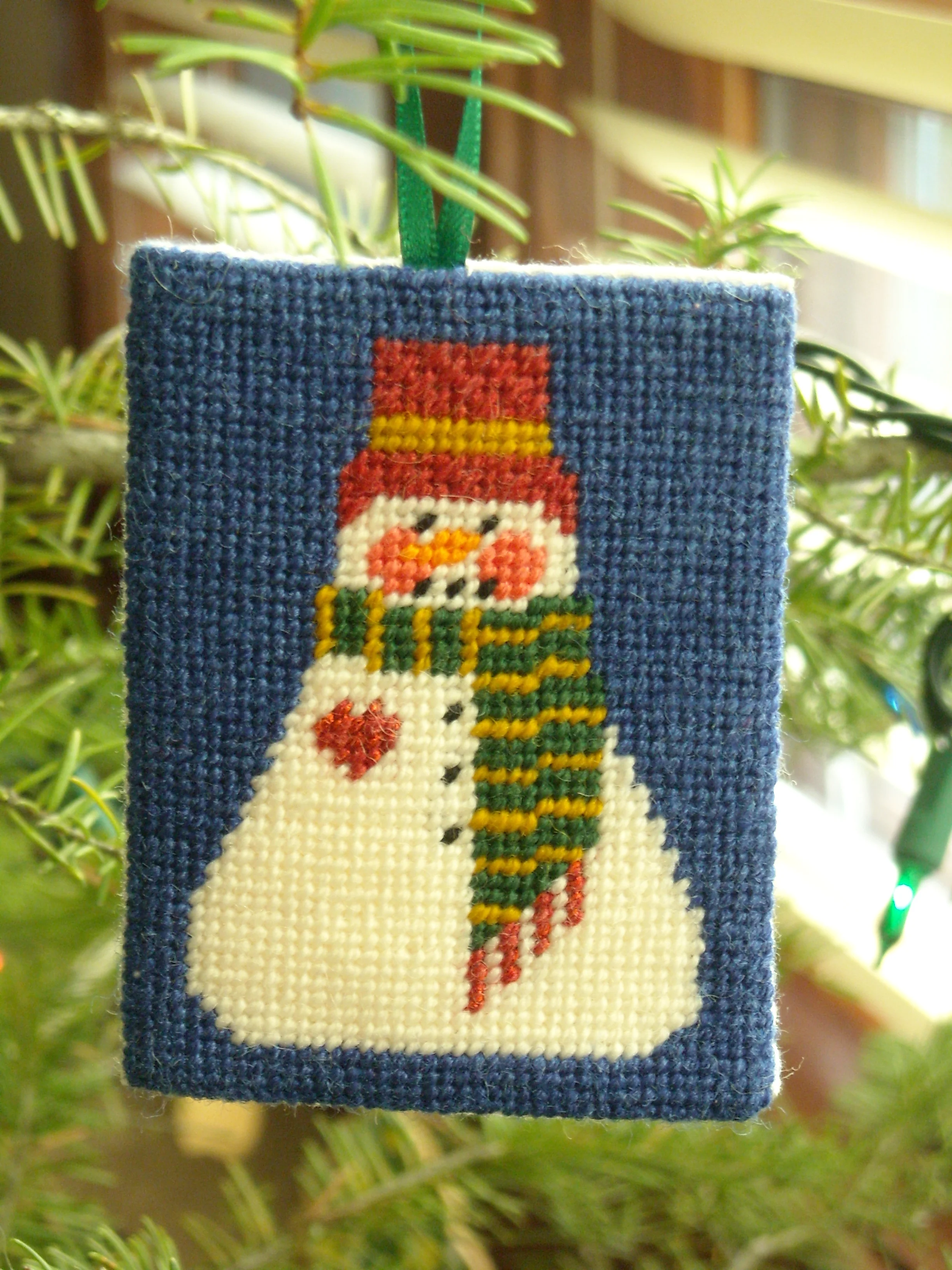 Needlepoint snowman I made several years ago. I finally got all the rest of them finished up this Christmas. Several people have gotten these as gift tags this year and Chloe and Ryan will get one too. This one is mine to keep!