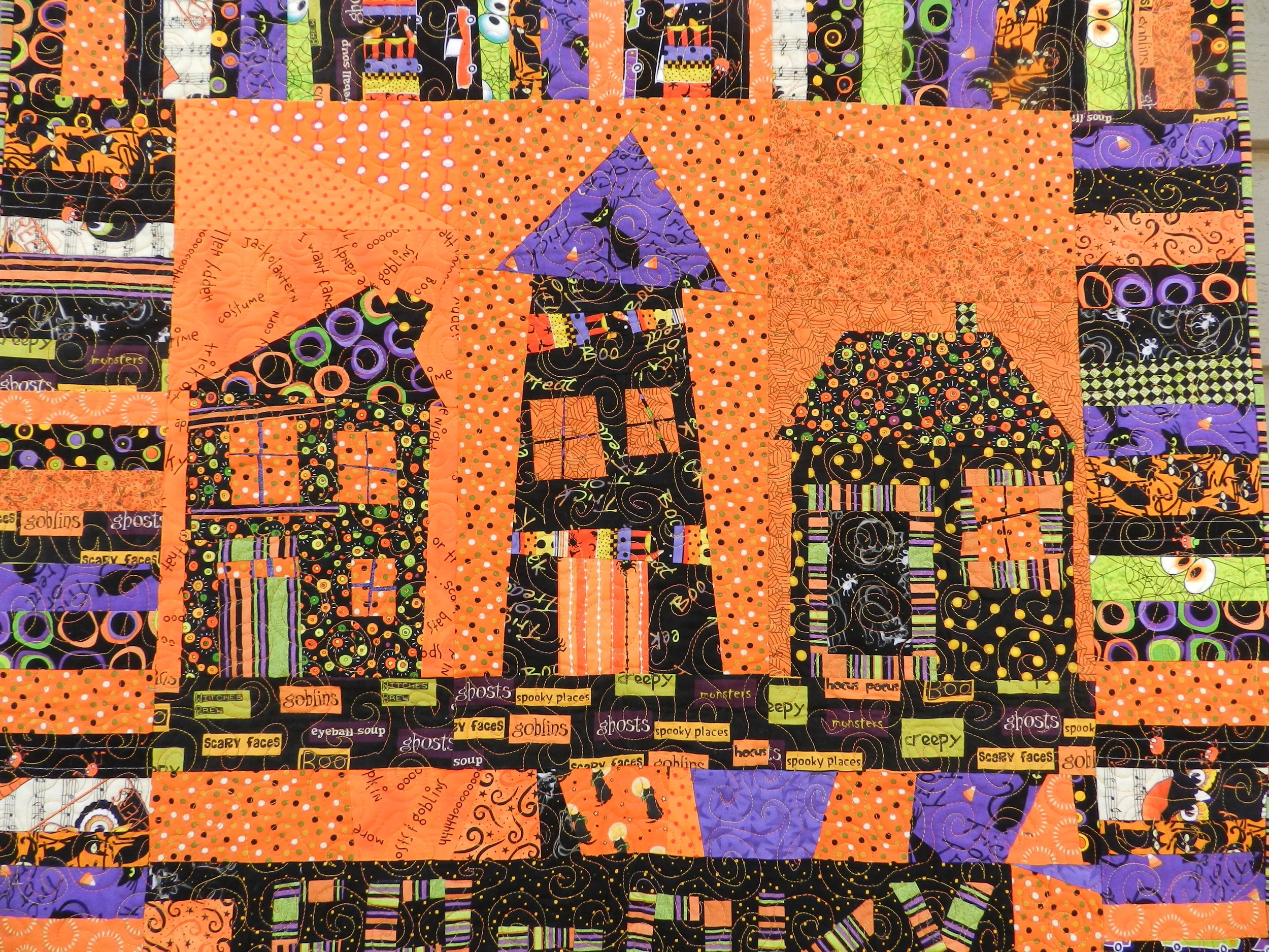 As I prepare for class I am gathering my samples of house quilts and realized how many I've done! To celebrate, I thought I'd show them here. Above is the first liberated house quilt that I remember doing. It's called The Witch is In and was made with liberated techniques. I really had fun with it and I still think it's a cool quilt, but it's one of my early machine quilted items and boy can you tell! So, don't look too closely.