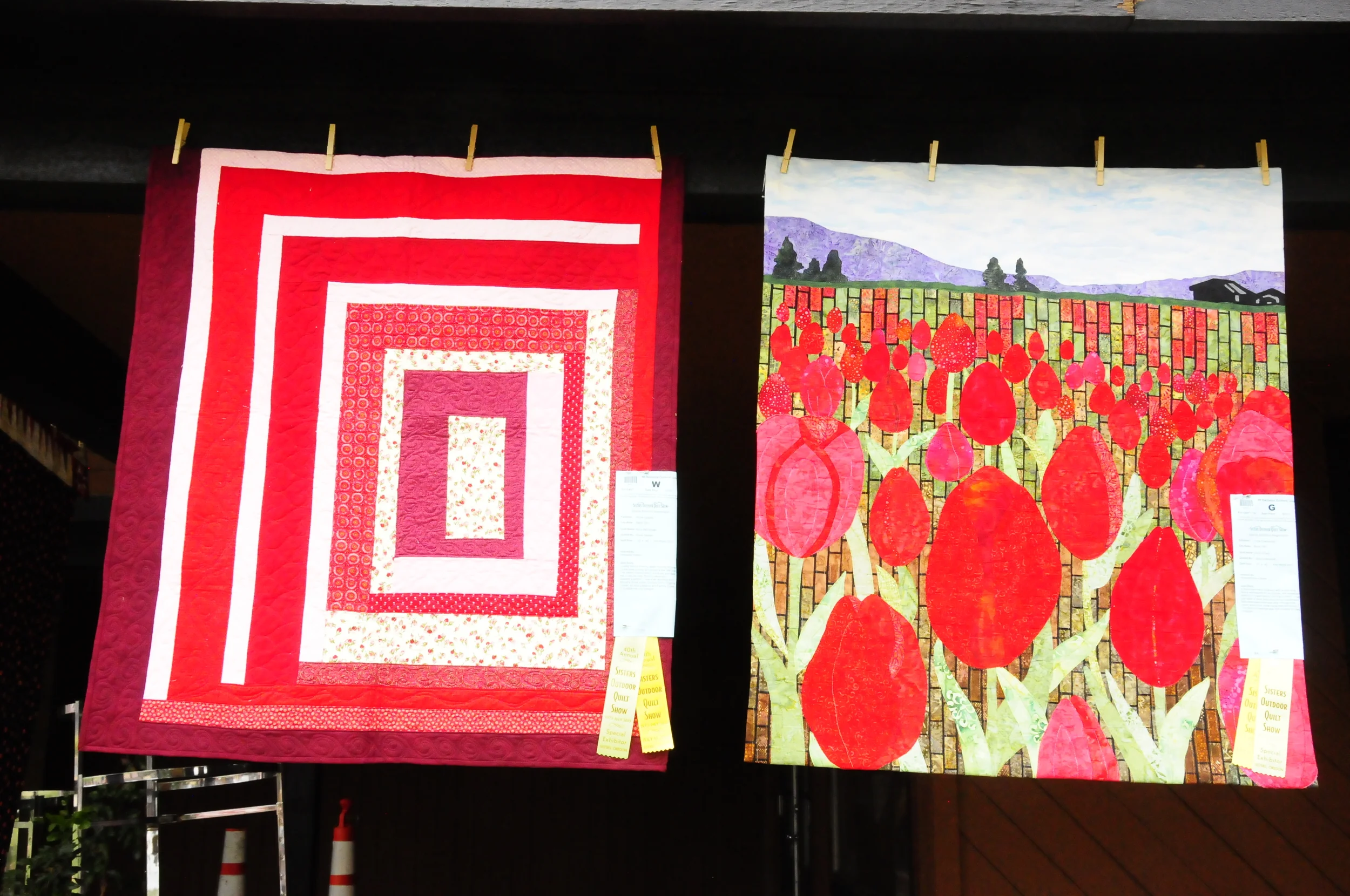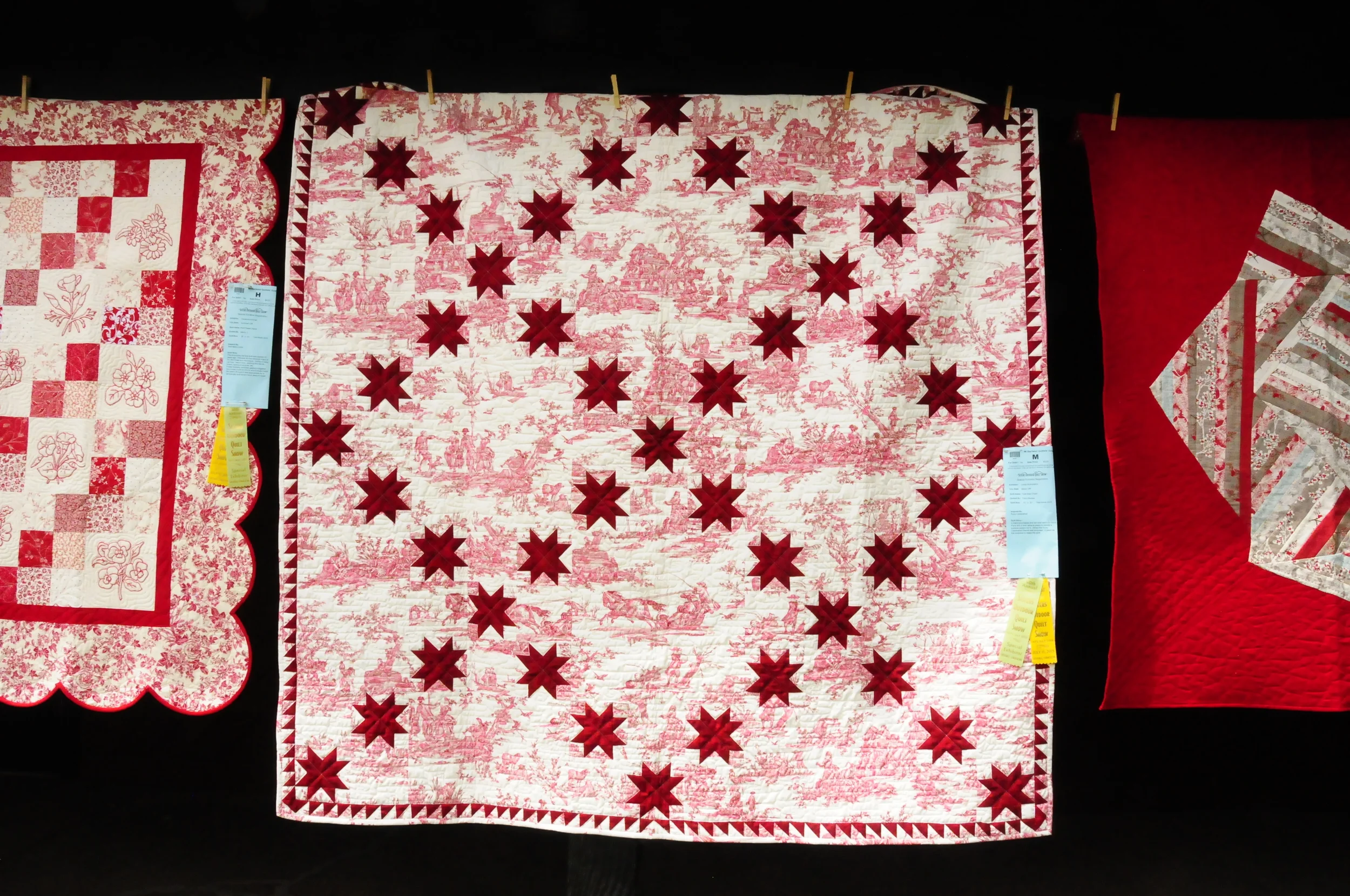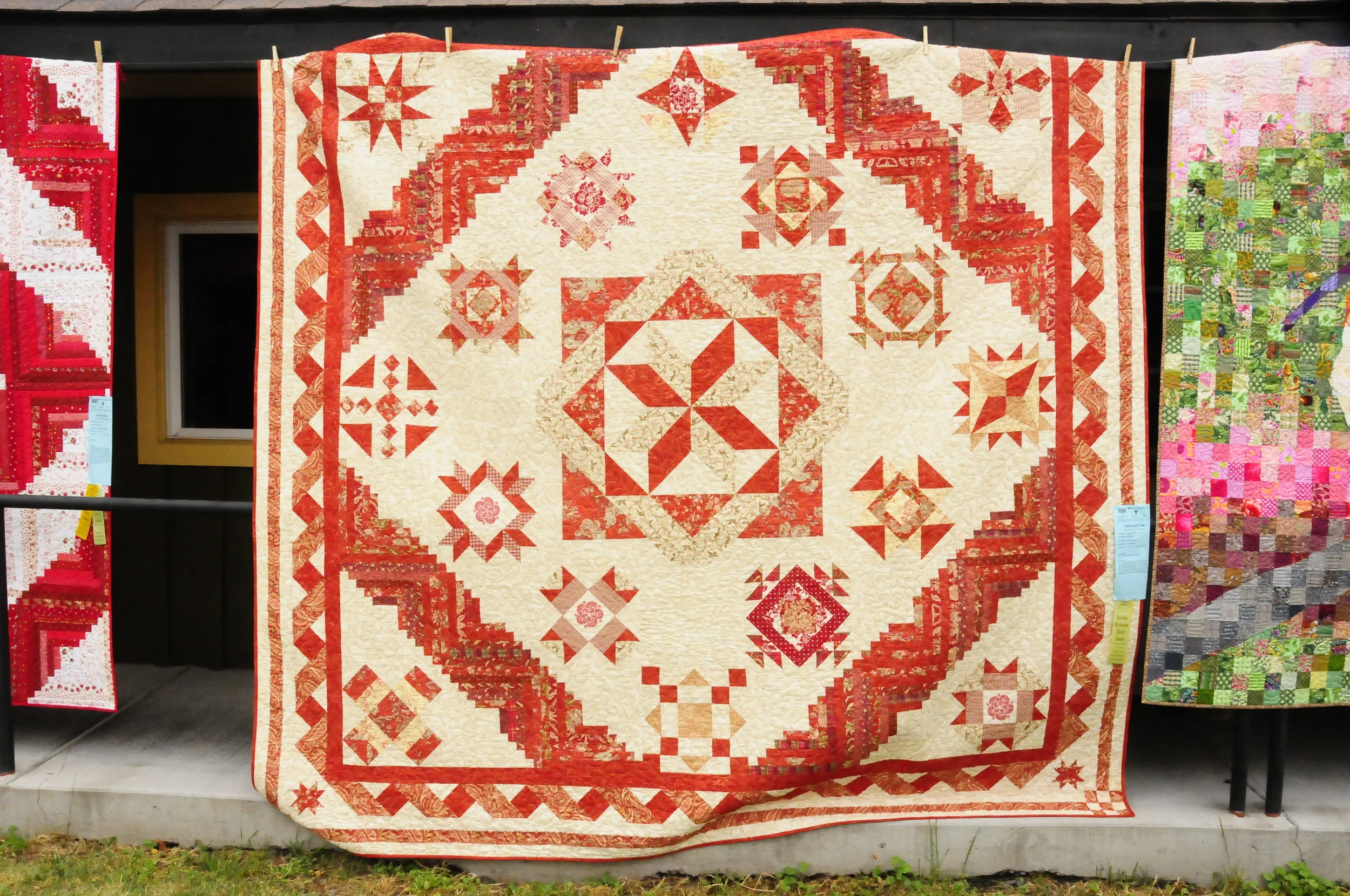 Last fall the Sisters Outdoor Quilt Show changed their timeline for submissions of quilts for special exhibits. It threw many of the local quilt guilds for a loop! The Mt Bachelor Quilters' Guild had to quickly come up with an exhibit and try to get as many members as we could to come up with quilts for it. We chose to do the theme "Ruby Celebration" for the 40th anniversary of the quilt show. It is actually pretty amazing how many of our members jumped to the challenge and made quilts for this amazing exhibit! Enjoy!