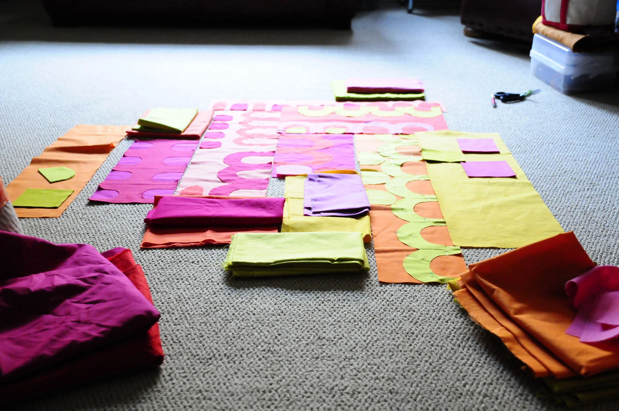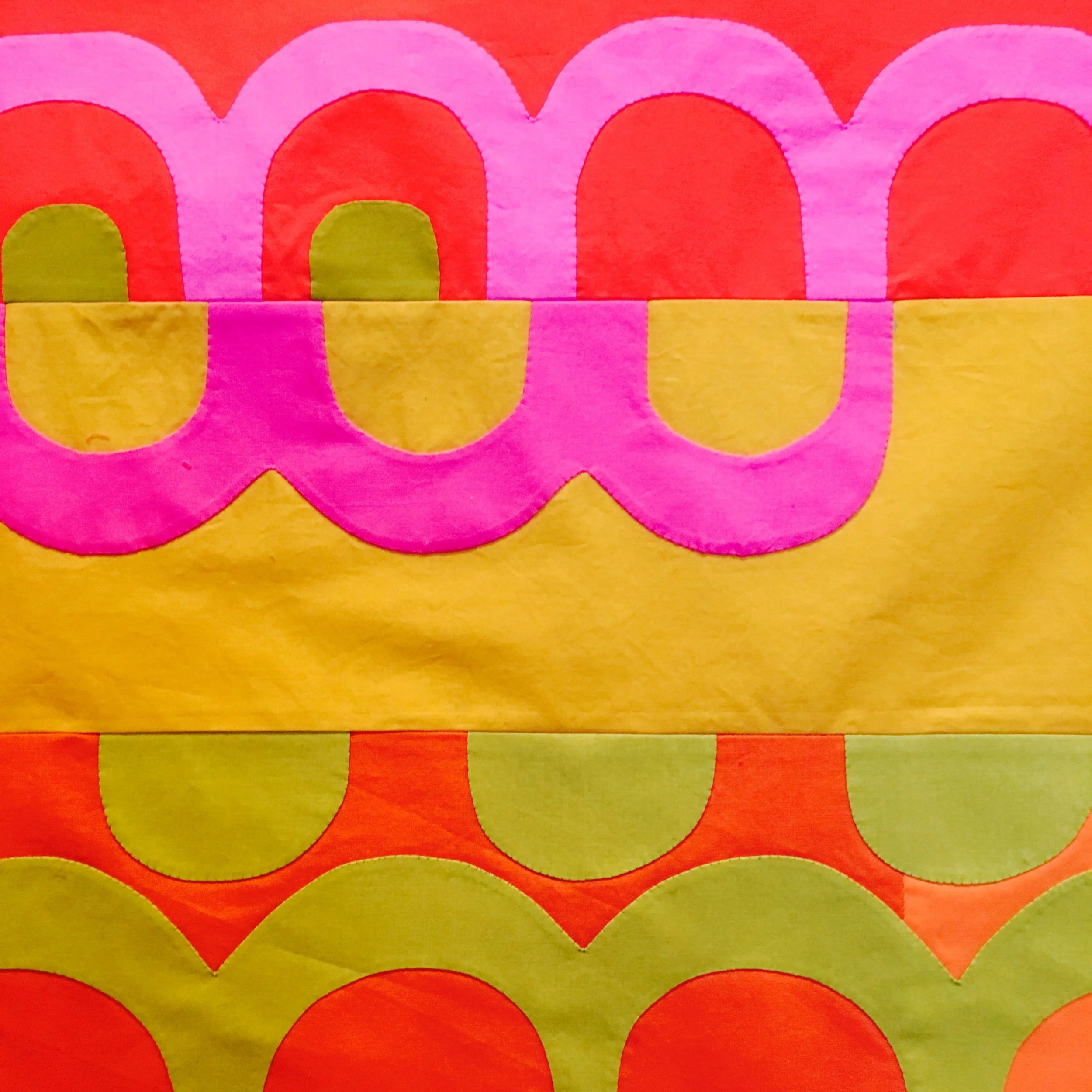 Arches and Tunnels is a hand applique project I started over 2 years ago. The photo below shows one of the many configurations I tried at that time. This was at our old house and just a few months before we decided to move. During the move this project was put away and forgotten about for a couple of years. You can see more about it in a blog post I wrote last September.