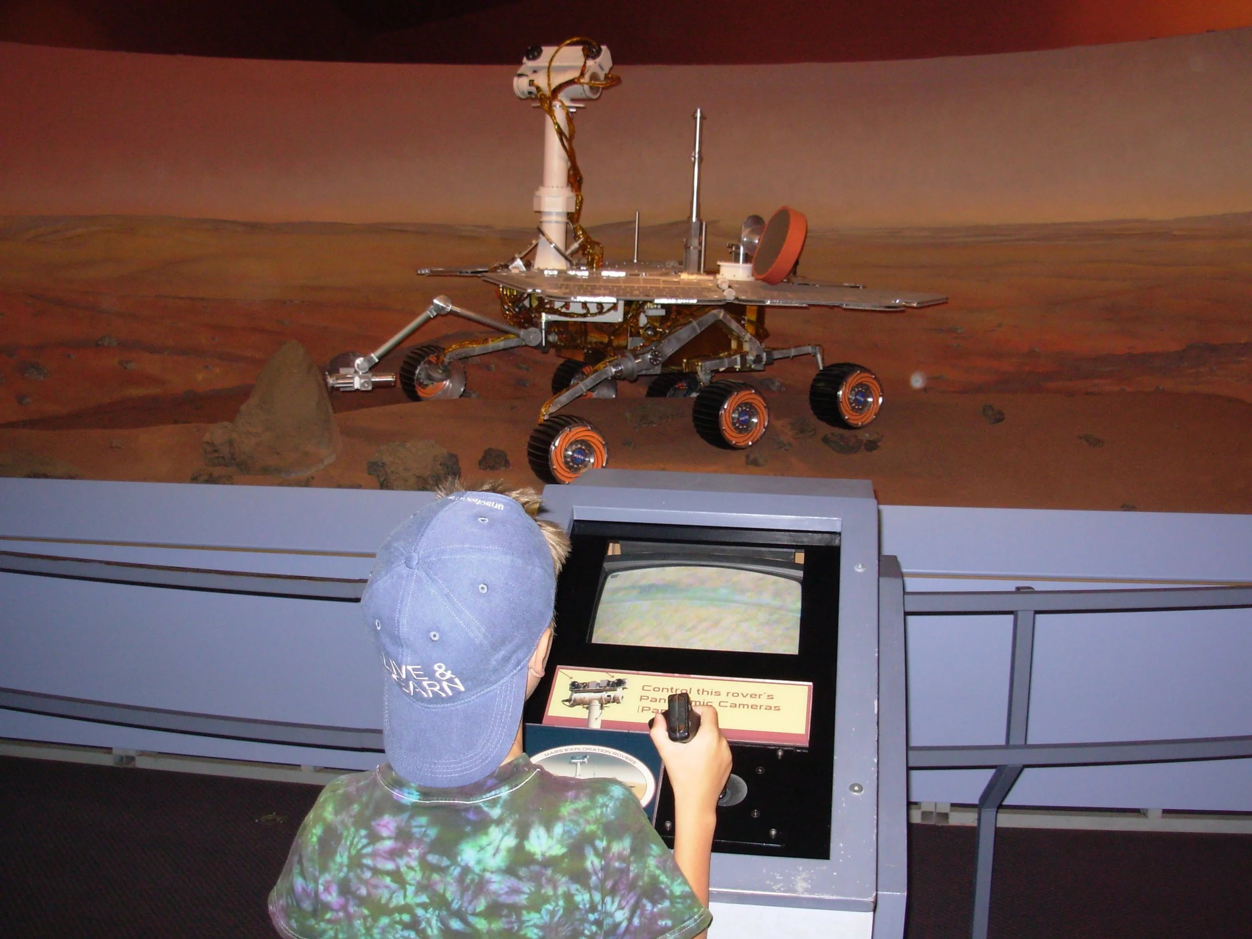 The Mars rover exhibit was one we spent some time at. It has a working camera on it that you can manipulate to look all around the exhibit.