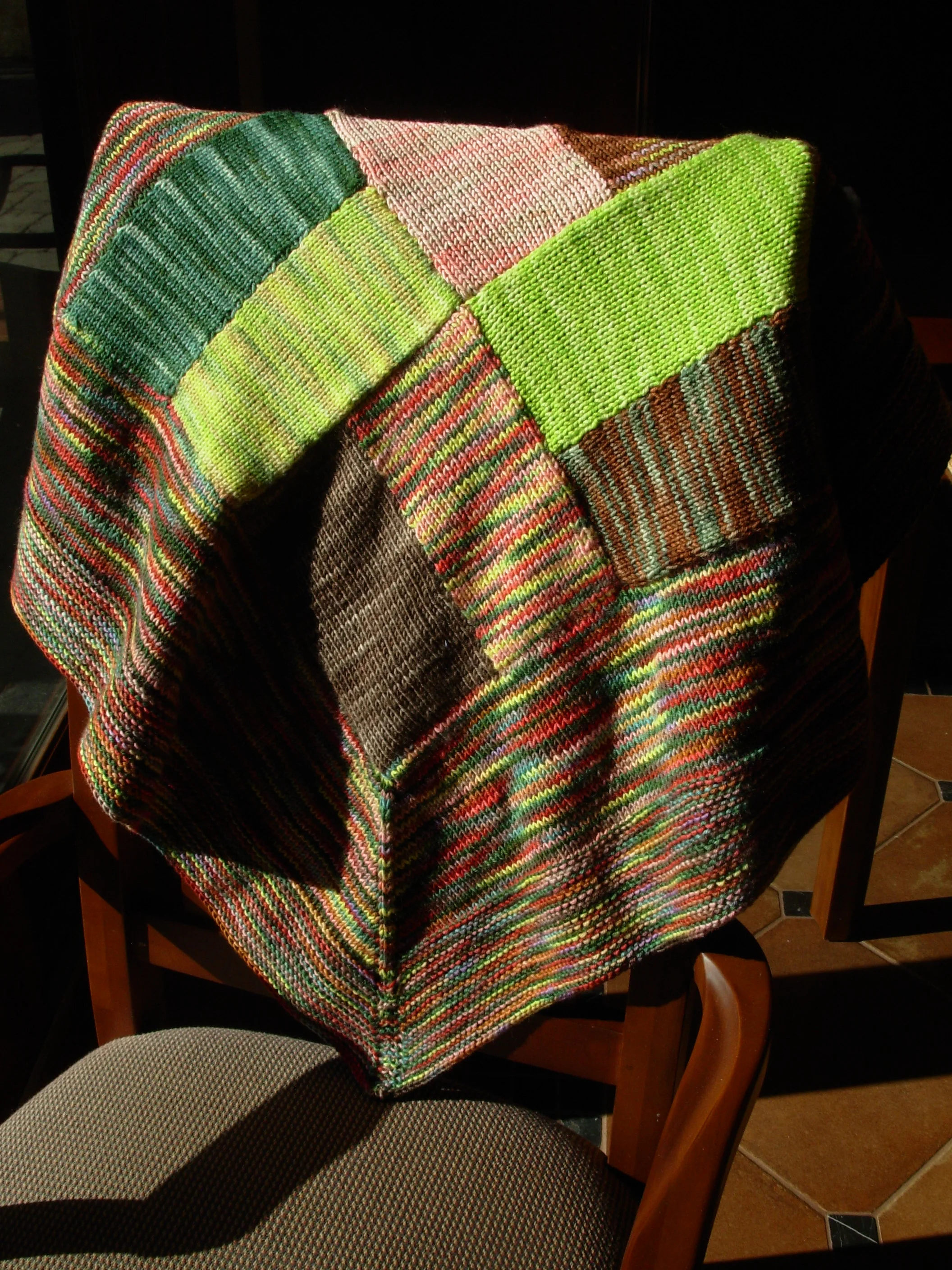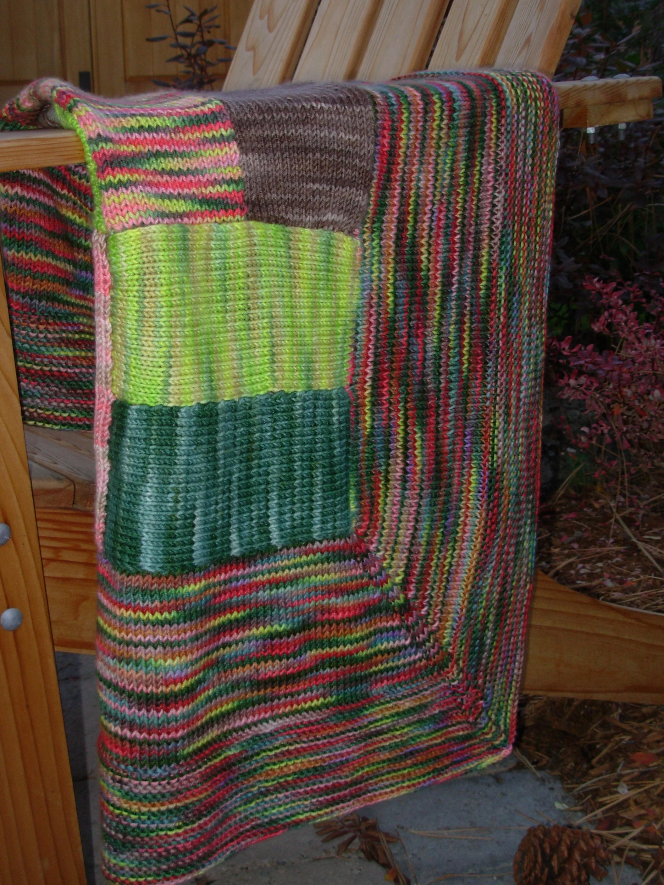 The charity blanket knit by the Dixie Chicks at Camp Cockamamie this April is done! Thanks to Nathania at Purls Beyond Price for the pattern!